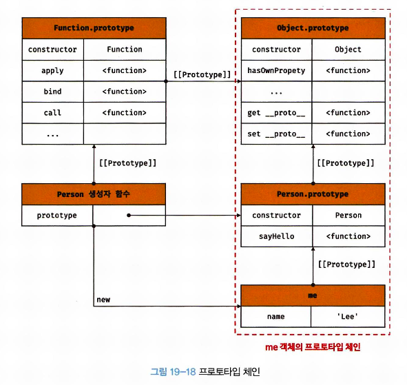 프로토타입 체인의 최상위 객체는 언제나 Object.prototype이다. 따라서 모든 객체는 Object.prototype을 상속받는다. Object.prototype을 프로토타입 체인의 종점(end of prototype chain)이라 한다.